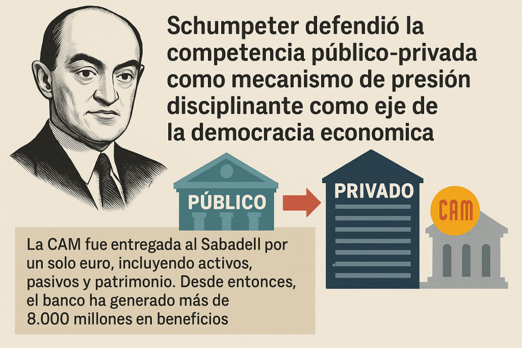 La democracia económica no es viable sin banca pública. Reunir lo que queda —ICO, Correos, cooperativas, participación estatal en CaixaBank— puede ser el inicio. Como alertó Schumpeter, sin competencia real no hay mercado… y sin banca pública, tampoco hay futuro para millones.
