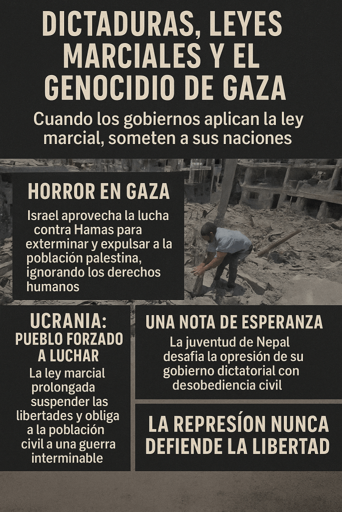 Gaza, Ucrania y Nepal representan tres formas distintas de una misma tragedia: cuando el poder se ejerce contra el pueblo, no hay defensa, hay dominación. Ya sea en nombre de Dios, de la patria o de la estabilidad, los derechos humanos no pueden ser suspendidos sin consecuencias.