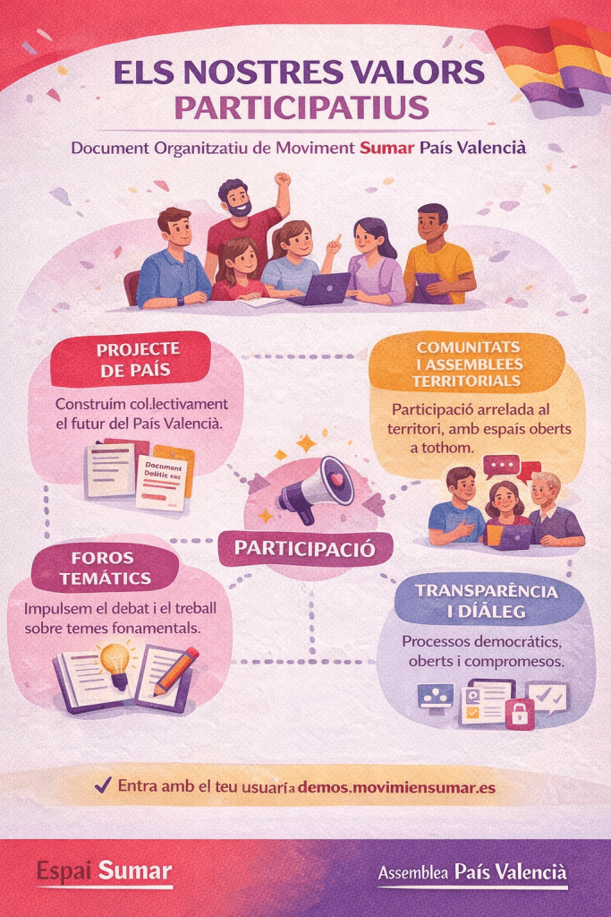 La participación no aparece como un mecanismo accesorio, sino como finalidad estructural del proyecto político. Esta formulación sitúa a Sumar en una tradición democrática avanzada donde participar es un derecho, no una concesión.